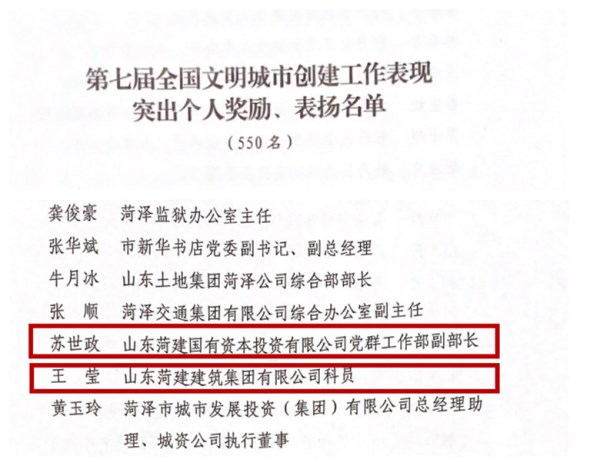 10月13日,菏澤市精神文明建設(shè)工作會議召開,對全國文明城市創(chuàng)建過程中涌現(xiàn)的先進(jìn)集體與個人進(jìn)行集中表彰。菏建國投公司憑借扎實(shí)有力的創(chuàng)城舉措與顯著成效,獲評“第七屆全國文明城市創(chuàng)建工作表現(xiàn)突出集體”;菏建國投職工蘇世政、菏建集團(tuán)職工王瑩因在創(chuàng)城一線的積極作為與無私奉獻(xiàn),榮獲“第七屆全國文明城市創(chuàng)建工作表現(xiàn)突出個人”稱號。